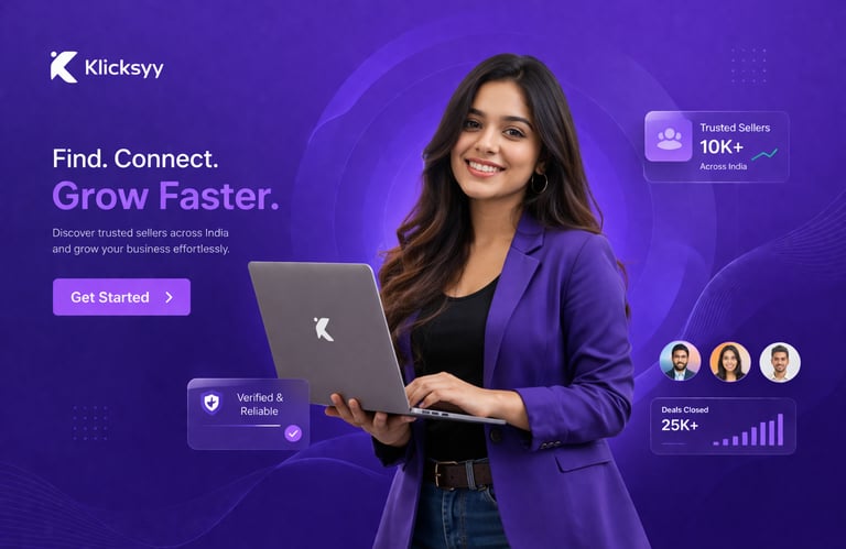 Klicksyy helps you boost visibility, connect with buyers, and expand globally through Ads, SEO, Websites & seamless Export–Import services.